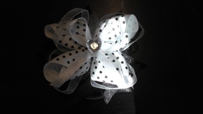 Бант из серии "Школьные" в черно-белом цвете. Диаметр 8,5 см. В наличии. Возможно изготовление в любом цвете.