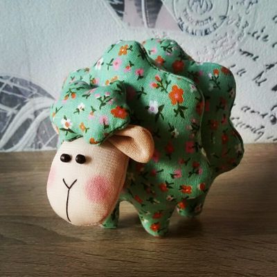 Текстильный барашек, выполнен из хлопка, наполнитель холлофайбер, рост около 10-12 см
