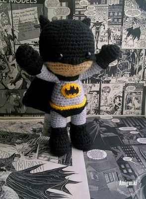 Гроза Готема,очаровательный человек-летучая мышь теперь может стать вашим) Милота этого создания зашкаливает. Высота 25 см. Все детали безопасны. Связано из акриловых ниток, набит синтепоном.