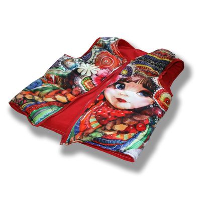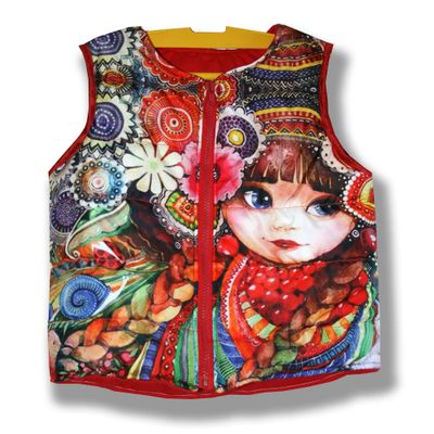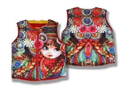 Модная, утепленная безрукавка для девочки - изделие совершенно необходимое! Неустойчивая весенняя погода обязывает быть готовым и к ветру, и к холоду, и к дождю. Но настроение призывает быть новой, современной, яркой! Стильная безрукавка с фотопринтом - именно то, что нужно! Она создаст уют и комфорт, а также сделает образ ребенка ярким и динамичным. Рисунок нанесенный методом сублимации создан по народным мотивам. Матрешка - круглолицая девочка, среди цветов. Гроздья рябины вплетеные в косы. Яркий рисунок, подойдет к любом однотонному наряду и создаст особое настроение в дождливую погоду. Безрукавка выполнена из плащевки с фотопринтом нанесенным методом сублимации, что делает ее необчной и интересной. Подклад - 100% хлопок. Утеплитель - синтепон. Под заказ возможно изготовление безрукавки с другим рисунком по индивидуальному макету. Этнические мотивы, милые феечки и девочки. Можно дополнить безрукавку вязаным капюшоном и рукавами и вы получите полноценную, стильную куртку для девочки. Возможно изготовление безрукавки с вязаными воротником и манжетами. В комплект к безрукавке можно сшить толстовку с тем же рисунком. Дополнительное описание Размер 140 см Сезон Демисезон Пол Девочки Утеплитель Синтепон Фактура материала плащевка Комплектация: безрукавка Цена безрукавки зависит от размера: Рост от 56 до 86 см - 1900 рублей. Рост от 92 до 110 см - 2000 рублей. Рост от 116 до 146 см - 2200 рублей. Рост от 152 до 176 см - 2500 рублей. Ручная работа! Точное повторение невозможно!