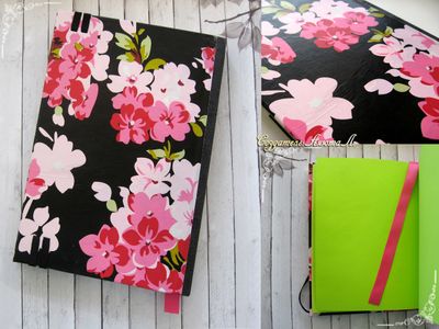 Лаконичный блокнот с яркими листами внутри. Внешняя сдержанность с цветами сакуры на черном фоне, и чистые яркие листы зеленого и розовго цвета - добавьте на них свои записи, рисунки, зарисовки, телефоны, памятные даты д.р. - и он оживет! Удобно закрывается на резиночки, нужная страница не потеряется благодаря закладке. Размер: А5