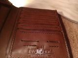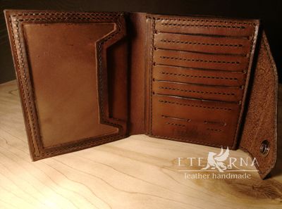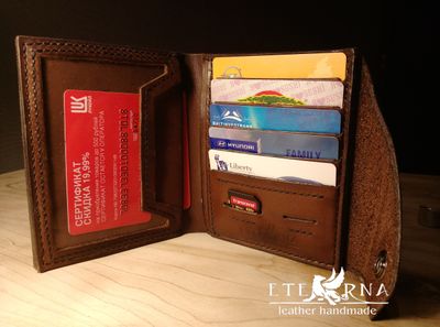 Размеры 13*11см -два больших отделения под купюры - два отдела под автодокументы с возможностью вставки вкладыша под автодокументы -1 карман с прозрачным пластиком -5 отделов под карты -2 отдела под карты памяти и сим-карту