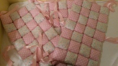 Бортики бом бон сшиты из сатина, наполнитель гипоаллергеный холофайбер. Размер бортиков 60*40.