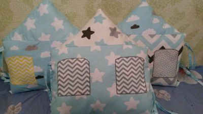 Бортики домики сшиты из 100% хлопка, наполнитель гипоаллергеный холофайбер.