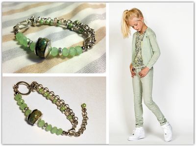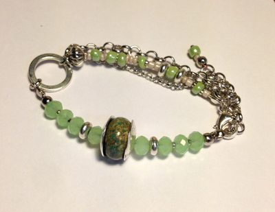 Браслет с бусиной мурано в мятных, светло-зеленых цветах