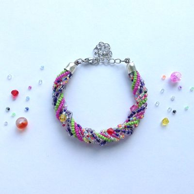 Крученый браслет из бисера и бусин на проволоке