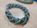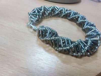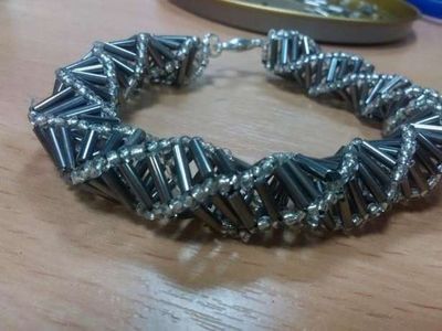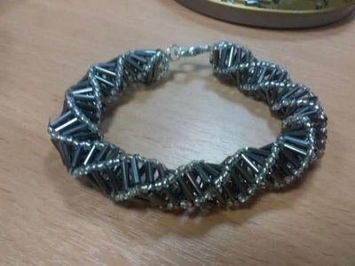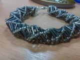 Браслет из бисера и стекляруса. Ручная работа. Застежка в виде надежного карабина, удобна и надежна в использовании. Сам браслет выглядит очень стильно и футуристично. Идеально подойдет, как для дополнения вечернего, так и повседневного стиля. Возможно изготовление в другой цветовой гамме.