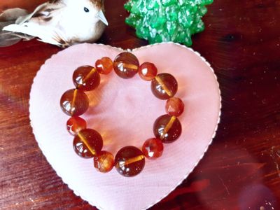 Браслет из агата и янтаря на резинке. В наличии два товара. Размер бусин: Агат — 12 мм, Янтарь — 8 мм. Резинка в меру тонкая, чёрного цвета. Отправление товара будет осуществляться через наложенный платёж.
