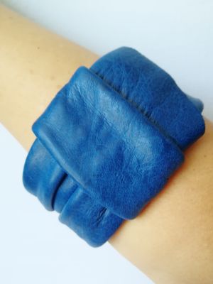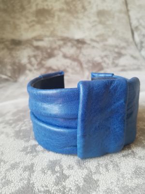 Браслет из натуральной кожи синего цвета, женский, на руку, подходит для ежедневной носки, диаметр 10 см, высота 6 см.