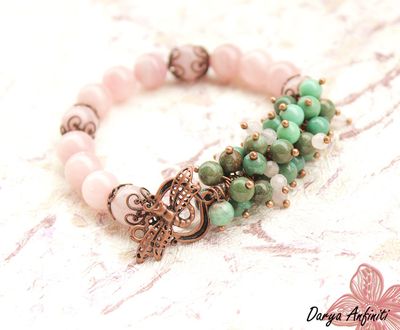 Мадагаскарский розовый кварц, хризопраз! Браслет на леске с замком. Вступайте, будем очень рады https://vk.com/daryaanfiniti