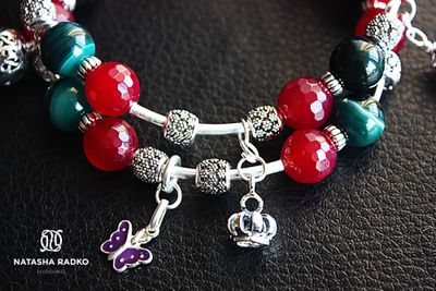 Это изделие подойдет для тонкой барышни. Для чувствительной и романтичной. Камни в этом роскошном браслете побуждают к творчеству, раскрывают глубокий внутренний мир, дают наслаждение от жизни. Необычное сочетание цветов будет привлекать внимание. Этот браслет станет любимым в твоей коллекции украшений. Его не захочется снимать. Не крупные камни, серебряные бегунки, подвеска-корона, бабочка, сфера все эти детали еще больше подчеркнут твою особенность и уникальность. Родохрозит-камень, вызывающий все прекрасное в человеке, побуждает к утонченному , некоторые народы верят, что с этим камнем приходит новая жизнь. Он рождает радость, дает надежду и новое ощущение жизни. Это факт, который я уже проверила на себе. Вообще все камни, с которыми я взаимодействую, все проверяю на себе. Их свойства, их мистику, их глубину и красоту. Камни: агат, родохрозит, в серебре.