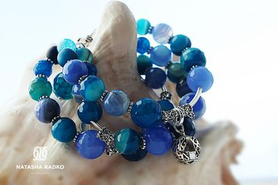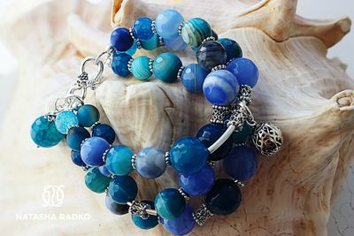 Глубокие оттенки синего, серебряные бегунки, подвеска. Роскошный тройной браслет для тебя. Синий цвет успокаивает и наполняет. Камни к нему подбирались с конкретными намерениями: любовь к жизни, создание семьи, раскрытие творческого потенциала в его хозяйке. Этот браслет станет любимым в твоей коллекции украшений. Его не захочется снимать! Камни: агаты в серебре