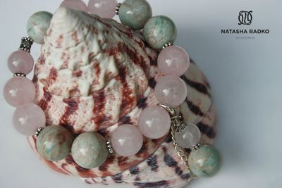 Камни: амазонит, розовый кварц, в серебре.
