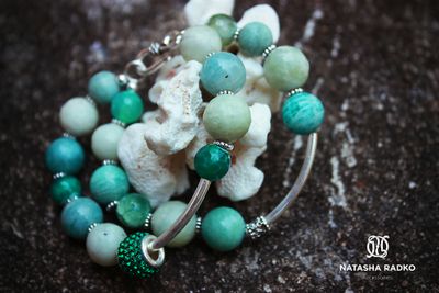 Камни: амазонит, жадеит изумрудный агат, в серебре.