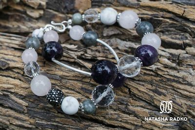 Камни: кварц, кахолонг, лабрадор, аметист, в серебре.