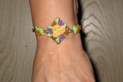 Декор выполнен из полимерной глины Fimo. Фурнитура бижутерия, цвет - бронза.