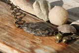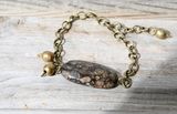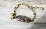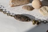 Брутальный браслет юнисекс из окаменелого ракушечника и африканских латунных бусинок ручной работы. Цепь и замок из железа под латунь. На запястье 16-22 см. Материалы: окаменелость, м/ф