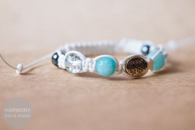 По символике браслет схож с "Бирюзовой ветвью", но в его основе - белый шнурок, а также кроме натуральных камней он содержит стеклянные бусины, поэтому он означает не только связь с природой, но и чистоту и легкость.