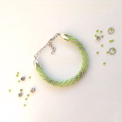 Вязанный крючком браслет из чешского бисера на меланжевой нитке.