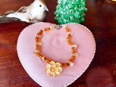 Браслет из цитрина и бисера "Цветок". В наличии один товар. Сам цветок сделан из пластмассы. Отправление товара будет осуществляться через наложенный платёж.