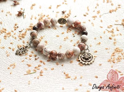 Стимпанк браслет с натуральными камнями и шестеренками