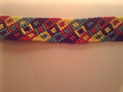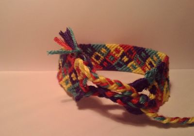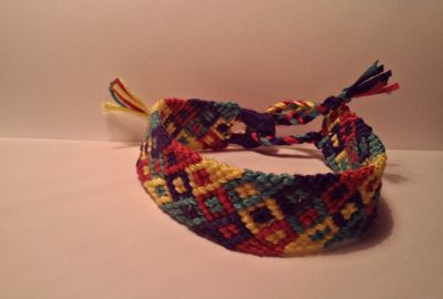 Браслет из ниток мулине с цветными квадратами . крепится и регулирует свой размер за счет петли и веревочек на концах изделия. если вам нравится узор, но не нравится цвет, напишите мне и я сделаю другой на заказ