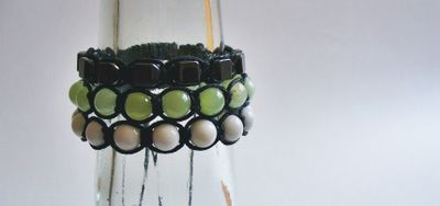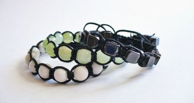 Вощеный шнур, белый агат, оникс, гематит. Крайние бусины и гематитовый браслет магнитятся. Растягиваются. Гематит: от 16 до 24 см. Оникс: от 19 до 30 см. Агат: от 19 до 32 см. Цена указана за 1 шт без учета пересылки