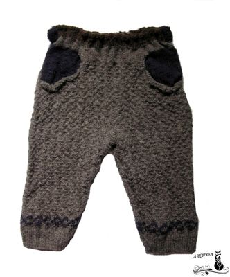 Вязаные брючки тканевым узором, орнаментом по низу и имитацией карманов.
