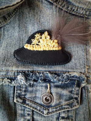 Брошь в форме шляпы на булавке!Отлично украсит даже детские вещи.