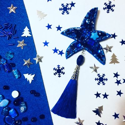Брошь выполнена в технике вышивки бисером. Благородный синий цвет придаст вашему образу неповторимую искорку😍