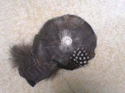 Брошь из перьев и пуха индюшки и фазана, перламутр,(основа натуральная кожа)