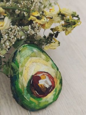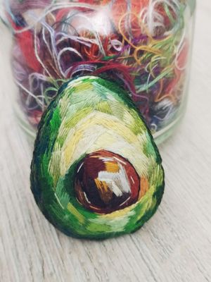 Брошь 🥑 Авокадо 🥑 ⚜ручная работа, художественная гладь ⚜натуральные нити, фетр ⚜размер 45х40mm