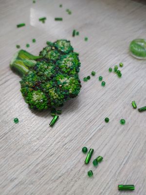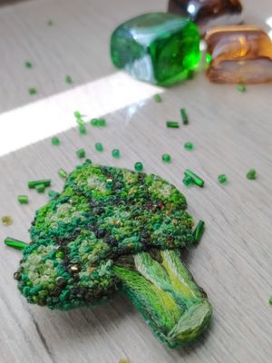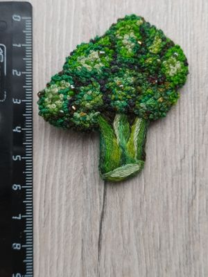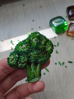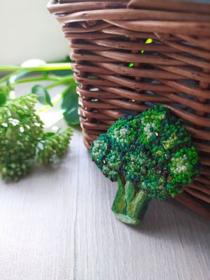 Знакомьтесь мистер Брокколи. Красивое дополнения вашего образа. Хорошо смотрится как на темной, так и на светлой одежде, также можно зацепить на шапку, снуд, рюкзак и тд. Брошь брокколи сделана в технике французский узелок, художественная гладь. Край броши аккуратно обшит хлопковой нитью. В брошь добавлен бисер, который сверкает в солнечных лучах. Добавьте в свой образ маленькое, зеленое брокколи. Он очень ждет Вас! Было очень радостно и увлекательно создавать эту красоту для Вас! Брошь "Брокколи" ручная работа, французские узелки, гладь натуральные нити, бисер, острая булавка, фетр размер 50х60mm