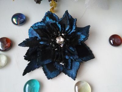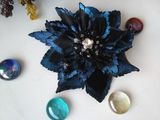 Выполнено вручную из качественных материалов. Сердцевина вышита испанским бисером. Материал лепестков: натуральная кожа (Турция) Цвет лепестков: черный с сине-перламутровой окантовкой Цвет сердцевины: черный с белым Диаметр броши: 10 см