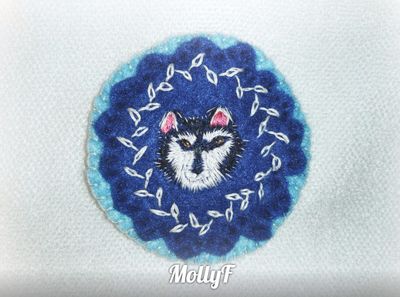 Брошь сделана в смешанной технике. Вышивка гладью, а также простая вышивка. Основа из фетра. Подойдет любому, будь то любитель собак, конкретной породы, а также для любимого питомца на шейный платок. Диаметр 6см