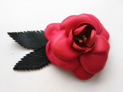 Выполнено вручную из качественных материалов. Сердцевина вышита бисером и камнями. Материал: натуральная кожа Цвет лепестков: кораллово-красный Цвет сердцевины: золотой Диаметр броши: 6 см (без листьев)