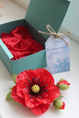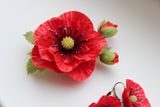 Крупный красный мак с мохнатыми теплыми листьями и бутонами сделает ваш образ еще ярче! Сделан из тайской и японских глин,тонирован масляными красками.возможно исполнение в виде броши,заколки,бутоньерки.