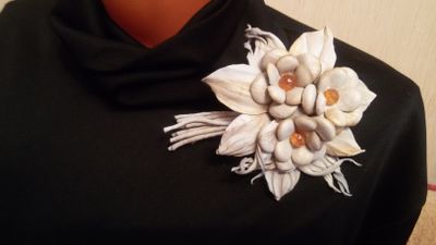 Бутоньерка из итальянской кожи бежево - золотистого цвета " Пробуждение" придаст романтизма Вашему образу, подчеркнет Ваш вкус. Размер: 10,5*13. Крепление - брошечная булавка.