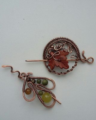 Медные броши, цена за штуку. Камни натуральные. Броши покрыты лаком.