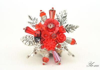 Брошь "Ключи от моего сердца"- это композиция из цветочков, хрустальных бусин и серебристой металлофурнитуры в виде листьев и ключей. Среди этой композиции притаилась милая божья коровка, изготовленная способом lampwork.Брошь легкая,можно надевать на легкие ткани. Так как здесь нет клея, то ее можно не бояться намочить. Подойдет для пальто, джемперов, платьев, шарфиков и куда еще подскажет фантазия. При покупке любых двух изделий, доставка по России в подарок. В остальные страны мира обговорим индивидуально. Под заказ, точного повтора не будет. Вы станете единственной обладательницей такой броши. Брошь изготовлена по авторской технологии Светланы Игнатьевой. Материалы: бусина lampwork, пластиковые элементы, металлофурнитура, хрустальные бусины, бисер Размер: В ширину-6,5 см, в длину-7 см