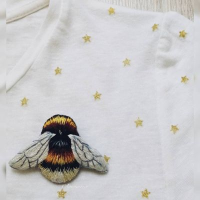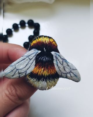 Брошь Шмель 🐝 Из семейства настоящих пчëл ⚜ручная работа, гладь ⚜основа фетр, натуральные нити ⚜размер 50х40mm