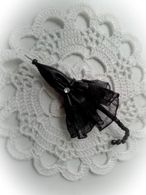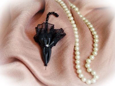 Этим зонтиком не укроешься от дождя, но зато эта милая и элегантная брошь наверняка поднимет настроение и украсит пальто, плащик, джемпер, шарф или даже шляпку. Выполнена брошь из натуральной кожи, дополнена бусинами и стразом.