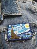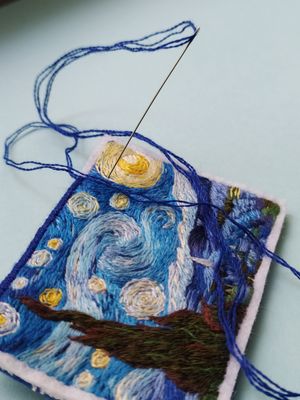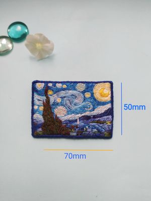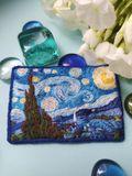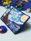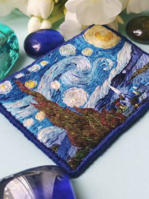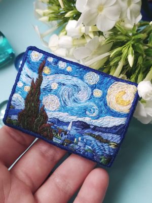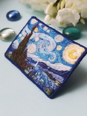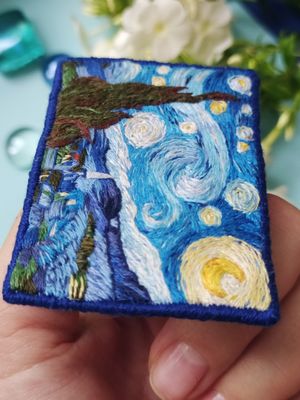 Брошь Звездная ночь по мотивам картины Винсента Ван Гога. Ручная работа, художественная гладь Натуральные нити, фетр, острая, японская булавка ⚜размер 70х50mm