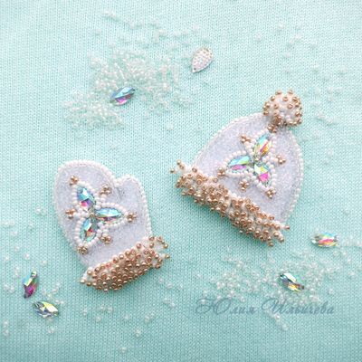 Такие милые, хрустальные и искрящиеся - зимние броши "Шапочка" и "Варежка". Прекрасные по отдельности, вместе создают неповторимый дуэт, навевающий праздничное настроение. Стоимость каждой броши 700 рублей.