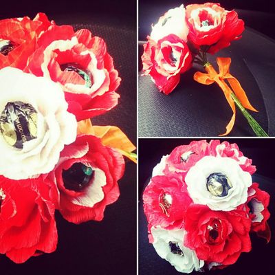 Букет с цветами и вкусными конфетами Марсианка в центре) Букет не требует дополнительного ухода и простоять может очень и очень долго! Когда же захочется сладенького можно вытащить конфету из цветка)