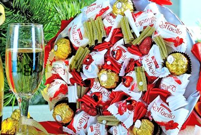 Не перевелись еще романтики на Руси... Хотите удивить даму, завоевавшую вашу сердце? С букетом «Сладкая романтика» сделать это проще простого. Ручная работа.