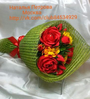 Букет из трех роз с конфетами Осенний вальс , в бутонах конфеты Марсианка.