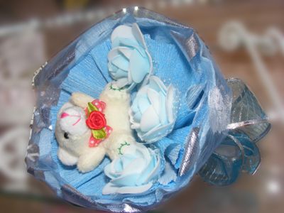 Букеты из мягких игрушек прекрасно заменяют традиционные цветочные букеты, ведь игрушки не вянут и будут радовать глаз много лет и станут деталью интерьера. Такой букет может порадовать как малышку, так и женщину любого возраста. Диаметр букета 16 см. Мишку можно аккуратно изъять из букета и носить как брелок или подвеску (петелька специально не срезана)