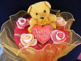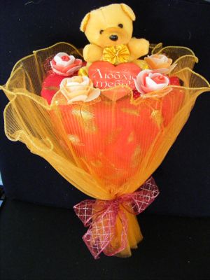 Букеты из мягких игрушек прекрасно заменяют традиционные цветочные букеты, ведь игрушки не вянут и будут радовать глаз много лет и станут деталью интерьера. Такой букет может порадовать как малышку, так и женщину любого возраста. Диаметр букета 25 см, высота 35 см.