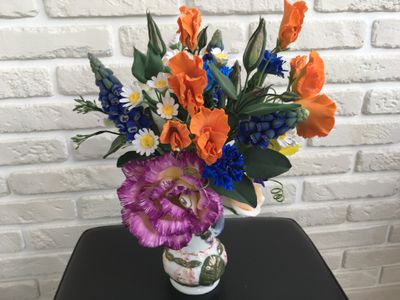 Букет с лизиантусами, душистым горошком, ромашками и др. из полимерной глины